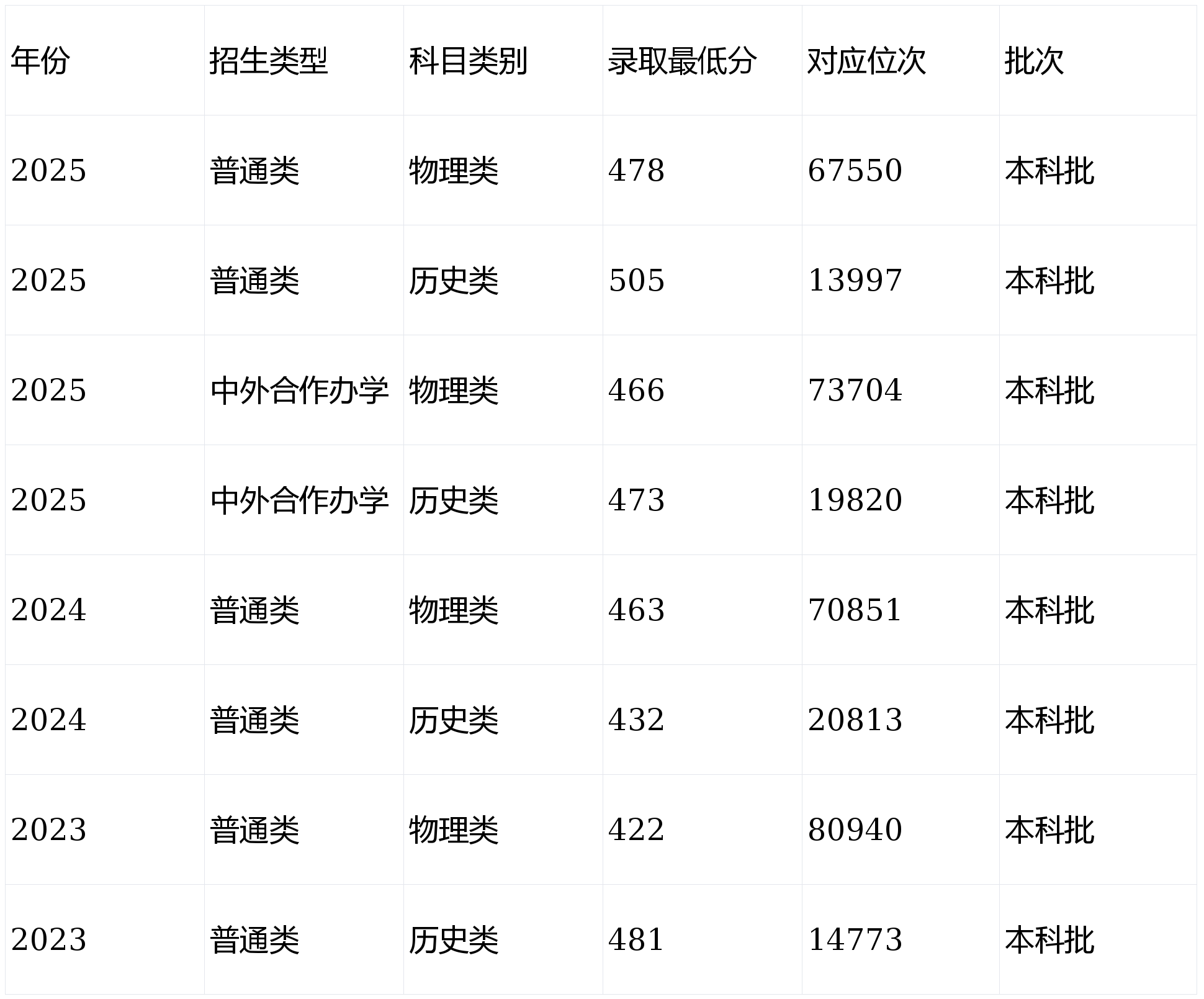 除上述焦点省份外,大连大学正在、山东、、等省份的王牌专业登科分数颇具参考价值,此中临床医学、口腔医学、等专业热度最高,分数显著高于院校最低分,具体如下:连系近三年登科数据,大连大学分数线全体呈现“稳中有升、区域分化、专业差别显著”的特点,焦点趋向及如下,考生务必沉点关心:无论是内仍是江西省等生源大省,大连大学近三年最低分均呈上升态势。以辽宁物理类通俗类为例,2023年最低分422分,2024年463分,2025年478分,三年上涨56分;位次从80940名提拔至67550名,报考合作逐年加剧,2026年考生需恰当提高分数预期。做为属院校,大连大学对当地考生有必然倾斜,内登科分数显著低于省外抢手省份。例如,2025年辽宁物理类通俗类最低分478分,而、山东等省份的王牌专业最低分均冲破580分,差距较着。这也意味着,内考生报考大连大学的性价比更高,省外考生需具备更强的分数合作力。大连大学中外合做办学(如旅逛办理、会计学等专业)膏火较高(约38000元/年),登科分数线遍及低于通俗类,适合分数稍低但家庭经济前提答应的考生,是“低分冲名校”的优良选择;而国度专项、高校专项打算针对特定区域或考生群体,登科分数遍及高于通俗类,合作难度更大,合适前提的考生可沉点关心。大连大学的王牌专业(临床医学、口腔医学、机械设想制制及其从动化、软件工程等)登科分数显著高于院校最低分,部门专业分数差距超100分。例如,2025年辽宁物理类通俗类最低分478分,而口腔医学专业最低分达571分,差距93分;江西物理类通俗类最低分490分,口腔医学专业最低分549分,差距59分。冷门专业(如市场营销、工程办理等)分数切近院校最低分,适合“保专业”的考生。高考分数受试卷难度、阅卷尺度影响较大,参考价值无限,而登科位次(全省排名)相对不变,是最焦点的参考根据。2026年考生,辽宁物理类排名70000名以内、汗青类15000名以内;江西物理类90000名以内、汗青类12000名以内,可沉点考虑大连大学通俗类专业;排名稍靠后的考生,可关心中外合做办学专业。大连大学部门专业有特殊要求:日语专业只招英语、日语语种考生,英语专业只招英语语种考生;临床医学、口腔医学、中药学等专业不招收色弱、色盲考生;新高考省份专业选考科目需严酷按照学校2021年填报的要求施行。考生报考前务必细心阅读2026年招生章程,避免因不合适要求被退档。若考生方针是大连大学的王牌专业,分数需高于院校最低分30-50分(参考近三年专业分数线差距);若只是想“上岸”大连大学,可选择冷门专业或中外合做办学专业,降低登科风险。同时,连系本身分数、位次及专业乐趣,合理搭配“冲、稳、保”意愿,避免盲目报考。1。 本文汇总的均为“登科最低分”,即昔时该校正在该省份、该类别登科的最初一名考生分数,现实登科中,大都专业分数高于最低分,特别是抢手专业;2。 部门省份2025年登科数据仍正在更新中,本文数据截至2026年2月22日,后续如有弥补,考生可登录大连大学招生网查询最新消息;3。 2026年大连大学本科预留打算规模不跨越客岁,具体招生打算以各省教育厅核准的分省分专业打算为准,招生政策将按照教育部2026年研招(本科招生参照)工做办理施行;4。 本文数据均来自卑连大学招生网、各省教育及发布渠道,线年报查核心参考,最初,祝福2026年列位考生都能取得抱负成就,连系本身环境科学报考,成功上岸心仪的大连大学,正在海滨校园全新的肄业之旅!若是需要领会大连大学具体专业的积年分数线、招生打算,可留言征询,后续将持续弥补更新。前往搜狐,查看更多!