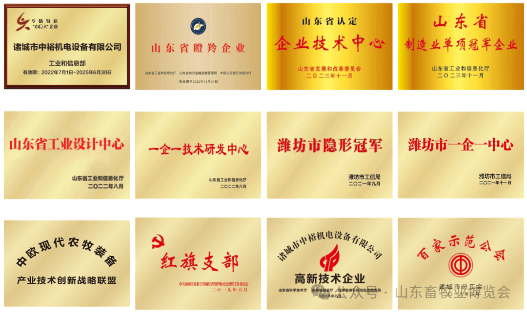 中裕是高新手艺企业、科技型中小企业、专精特新“小巨人”企业、“瞪羚企业”、办事型制制示范企业、“制制业单项冠军”企业、市“冠军“企业。具有自从发现一百余项,先后取中国科学院、中国农科院、中国农业大学、上海交通大学、齐鲁工业大学、山东畜牧兽医职业学院等成立了科研、校企合做关系。