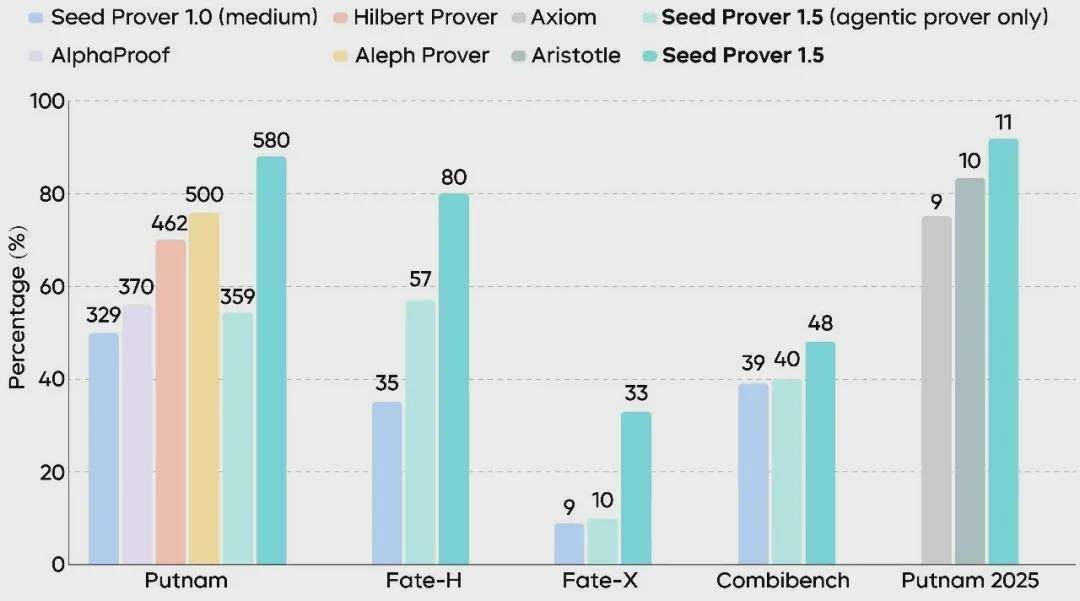 12月24日动静,字节跳动Seed团队颁布发表推出形式化数学推理公用模子Seed Prover 1。5。据引见,比拟上一代模子,Seed Prover 1。5正在16。5小时内,针对IMO 2025的前5道标题问题生成了完整可编译验证的Lean证明代码,换算成就为35/42,达到此前IMO评分尺度的金牌分数线。Seed Prover 1。5的手艺演讲已对外公开,后续将API,邀请感乐趣的数学和AI研究者体验该模子。(同花顺财经)